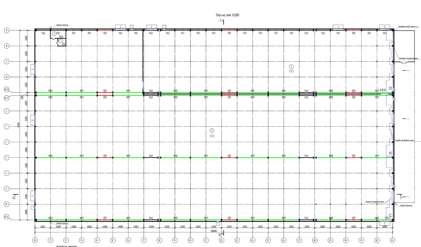 - В каждом пролете предусмотрены по две кран-балки грузоподъемностью по 5 тонн каждая;
