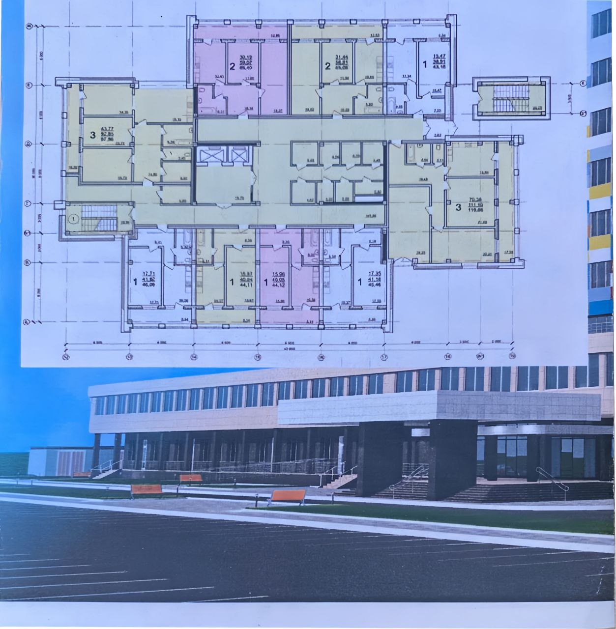 На первом этаже предусматривалось 594 кв.м. офисных и 978 кв.м. торговых площадей.